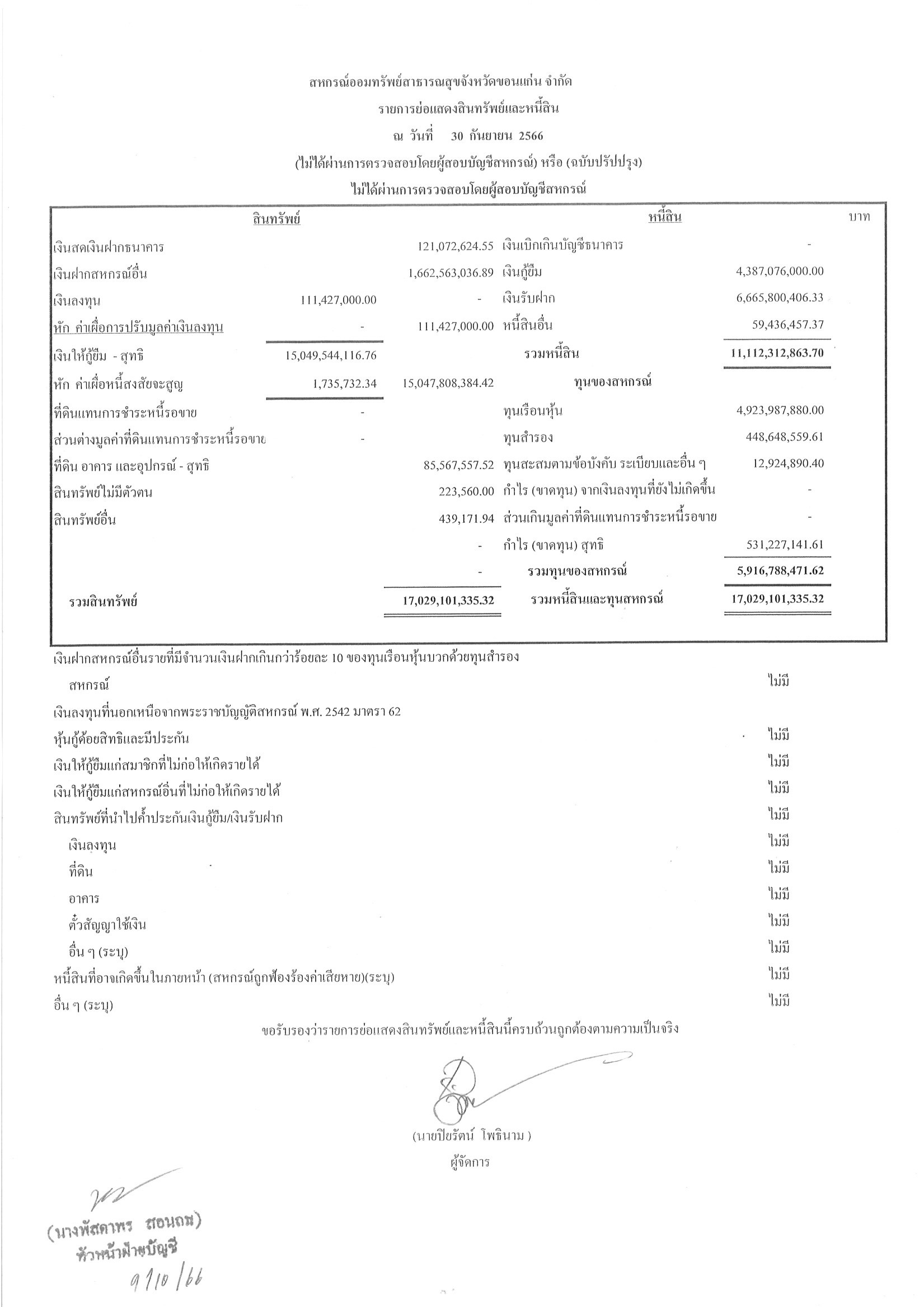 รายการย่อแสดงสินทรัพย์และหนี้สิน ณ วันที่ 30 กันยายน 2566